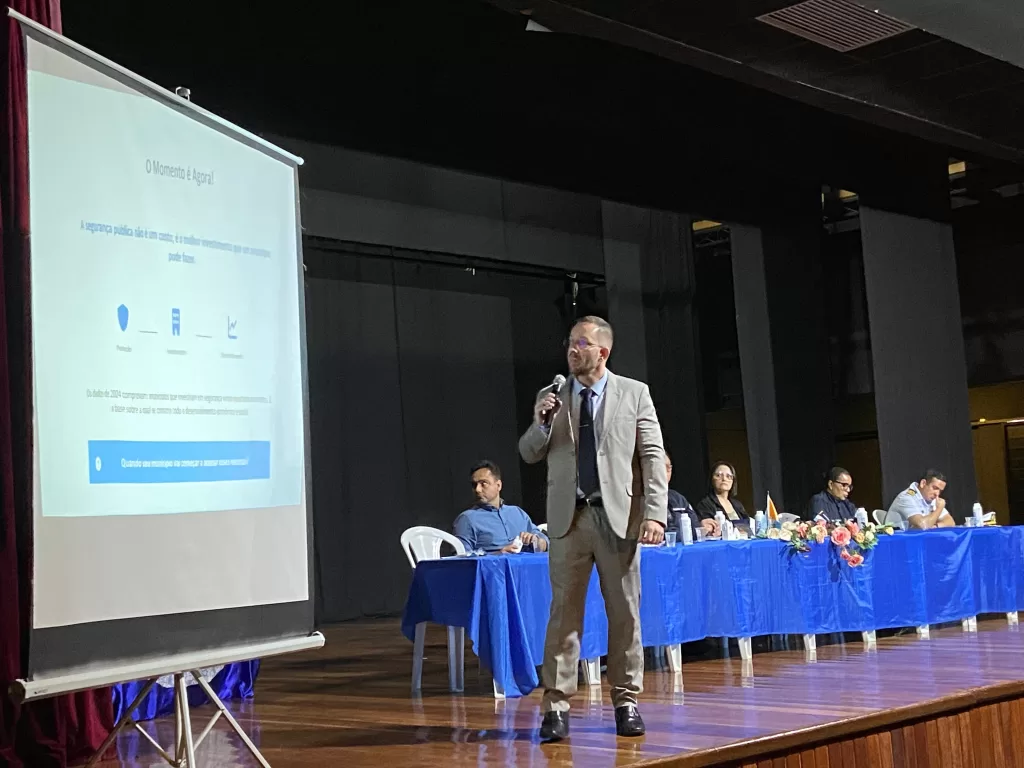 Durante sua apresentação, o secretário de Segurança e Ordem Pública, Diego Alves, destacou a importância de continuar o investimento no setor. “A segurança pública é um pilar fundamental para o desenvolvimento econômico e social, trazendo benefícios diretos e indiretos para toda a comunidade. Estudos apontam que cada real investido na área gera economia de até sete reais nas consequências da falta de investimento”, afirmou. O secretário também ressaltou avanços locais, como a modernização da radiocomunicação da Guarda Civil Municipal (GCM), a aquisição de armamentos não letais, o Plano de Cargos, Carreiras e Remuneração (PCCR) e a qualificação contínua dos agentes.