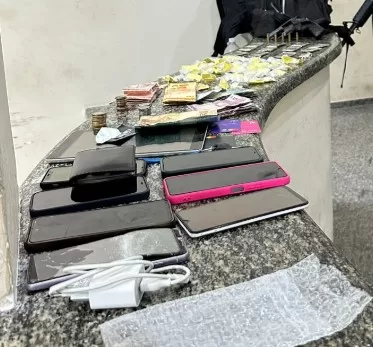 Entre os materiais apreendidos estão um revólver calibre 38, munições, cocaína, maconha, crack, celulares, uma motocicleta Yamaha Factor 160 e um veículo VW Gol.