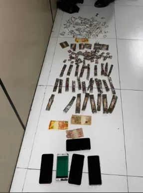 Dentro do imóvel, os policiais encontraram mais dois suspeitos e uma quantidade significativa de drogas, incluindo maconha e crack, além de outros celulares e dinheiro. Os suspeitos alegaram não saber a origem do material e que utilizavam o local abandonado para o consumo de drogas.