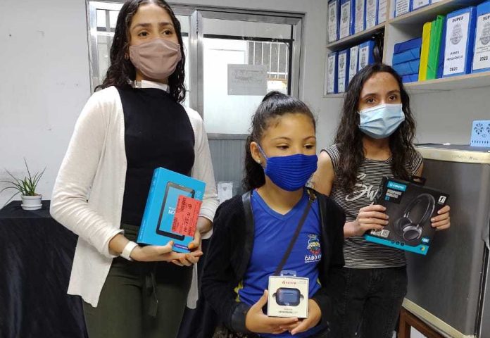 Em cerimônia simbólica, Iasmim da Silva Santos (Escola Municipal Vereador Leaquim Schuindt – Jardim Esperança), Mariana Silva de Lima (Escola Municipal Prof.ª Marcia Francesconi Pereira – São Cristóvão) e Thalya Vitória Martins Rodrigues (Escola Municipal Prof.ª Elicéa da Silveira – Gamboa), alunas do 9º, 7º e 4º anos do ensino fundamental foram premiadas, respectivamente, com um tablet, um fone de ouvido bluetooth e um fone de ouvido sem fio. As alunas vencedoras produziram um vídeo, um texto e um desenho.