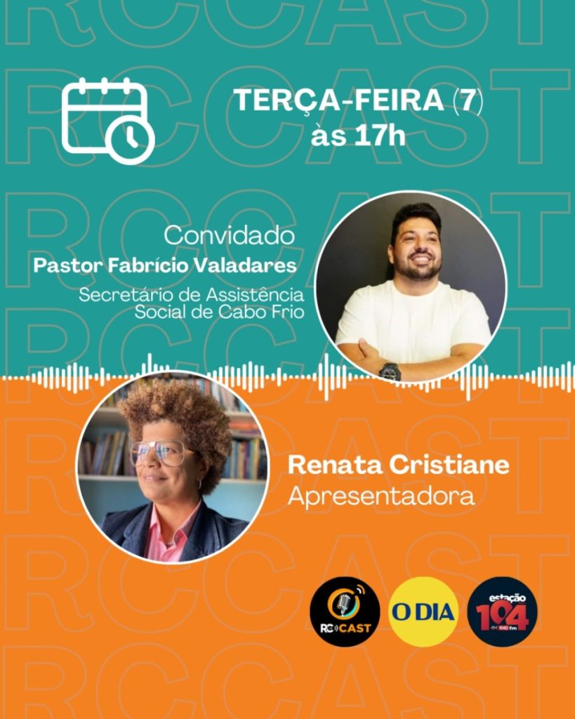Esta terça-feira (7) é dia do 113º episódio do RC Cast e quem vai bater um papo com a apresentadora Renata Cristiane é o secretário de Assistência Social de Cabo Frio, pastor Fabrício Valladares. Ele, que entrou para o primeiro escalão da Prefeitura logo após Magdala Furtado assumir, vai falar das ações da pasta nesses quase quatro meses de comando da secretaria. O podcast terá transmissão ao vivo a partir das 17h e pode ser acompanhado pelas páginas do Portal: Facebook (Portal RC24h I e II), Instagram (@rc24hnoticias) ou no Youtube (Portal RC24h Cabo Frio).