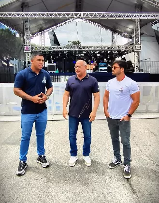 O prefeito Marcelo Magno (PL) esteve nesta quinta-feira acompanhando os últimos preparativos para o Celebra Arraial, evento voltado ao público gospel que acontece no Largo do Estádio, no Centro da cidade. Ele esteve acompanhado do secretário de Turismo, Júnior Chuchu, e do subsecretário de Eventos, Max Magalhães. O festival, que promete reunir fiéis em dois dias de louvor e adoração, começa nesta sexta-feira (26), às 19h, com apresentação do DJ Gospel Carlinhos. Às 21h, o público poderá assistir ao show do cantor Anderson Freire, um dos maiores nomes da música gospel nacional. No sábado (27), a programação continua com abertura do DJ Carlinhos e, em seguida, show da Banda Morada, referência no cenário gospel contemporâneo. A expectativa é de que o evento movimente a cidade, reunindo moradores e visitantes em um momento de fé, música e celebração. “Vem celebrar com a gente”, convidou Marcelo.