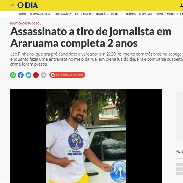 Além disso, outro vereador, Oliveira da Guarda (MDB), marido de Penha e que também é oposição ferrenha contra os desmandos de Chiquinho – que não manda nada na cidade, pelo menos em tese -, já levantou suspeição sobre a morte de Leonardo Pinheiro, jornalista e líder comunitário, assassinado com três tiros na cabeça, à luz do dia, quando fazia matéria no bairro Parati, há quase três anos. Certo que pessoas já foram presas mas o mandante, mesmo, não chegaram nele até agora. Fato é que, depois que Léo foi morto cessaram as denúncias políticas na região em que ele atuava. A política de Araruama está cada vez mais parecida com Magé e Caxias. Esse é o comentário por toda Região dos Lagos.