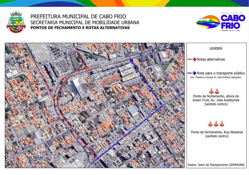 A Prefeitura de Cabo Frio deu início nesta segunda-feira (22) às obras de drenagem e pavimentação da Avenida Julia Kubitschek. A intervenção, coordenada pela Secretaria da Cidade, começou com a interdição do trânsito a partir das 8h, no trecho próximo ao Green Fruit, sentido Centro.