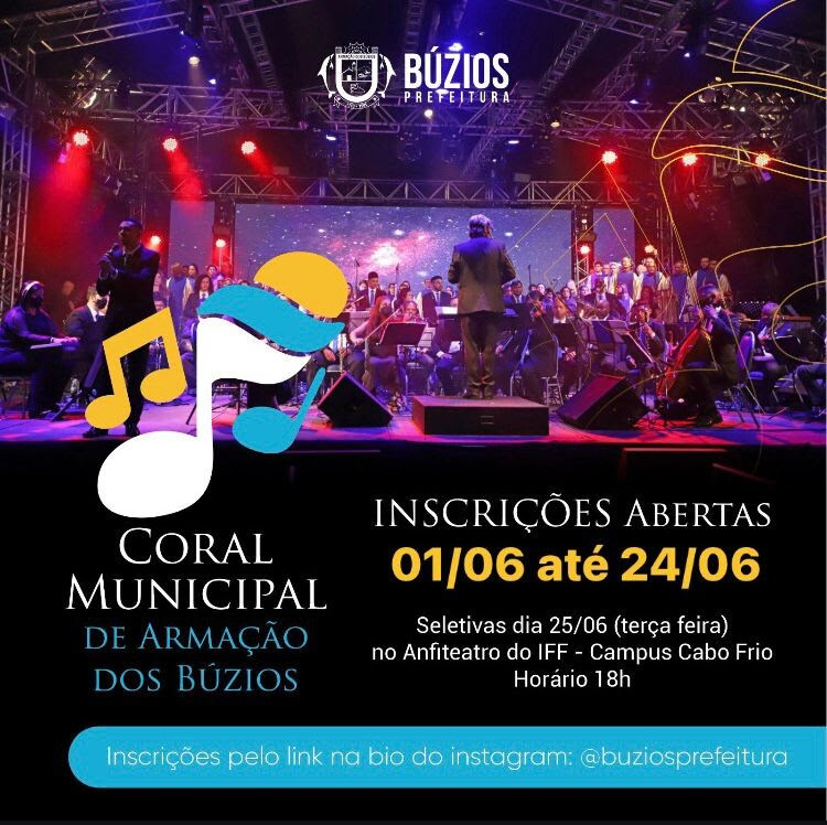 O Coral Municipal de Búzios está com inscrições abertas para quem deseja integrar o grupo. Sob regência do Maestro Alberto Midon e preparação vocal de Gleris Domingues, o coral busca novos talentos para enriquecer suas apresentações.