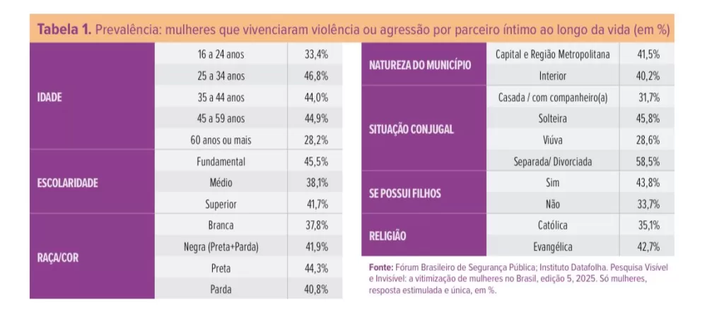 Apesar dos avanços legislativos, o Anuário Brasileiro de Segurança Pública de 2025 registra o maior número de casos de violência contra mulheres desde 2017, alcançando mais de 21 milhões de vítimas. Deste número, mais da metade dos crimes ocorreram dentro da casa da vítima (64,3%) e foram cometidos por companheiros ou ex-companheiros (66,8%). Além disso, 91,8% dos casos aconteceram na presença de terceiros. Os dados ainda apontam para o perfil da vítima: em sua maioria, mulheres pretas com idade entre 25 e 34 anos.
