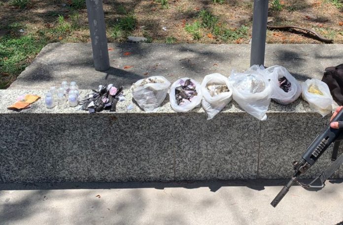 De acordo com a ocorrência, as guarnições estavam em patrulhamento preventivo, quando se depararam com o elemento, identificado como J.P.A.F.S., com uma mochila com drogas. O acusado tentou fugir, mas foi alcançado pelos policiais.