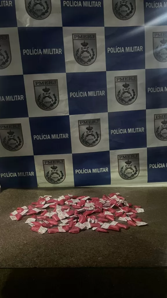 Policiais militares do 25º BPM apreenderam, na madrugada deste sábado (23), 93 pinos de cocaína no Morro do Milagre, em São Pedro da Aldeia.