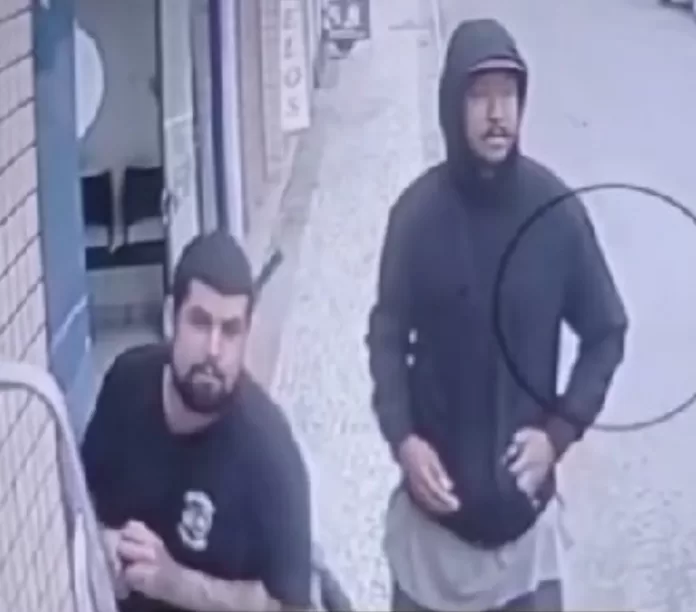 Dois homens foram flagrados por câmeras de segurança pichando a fachada de uma loja localizada na Avenida Teixeira e Souza, no Centro de Cabo Frio, nesta semana.