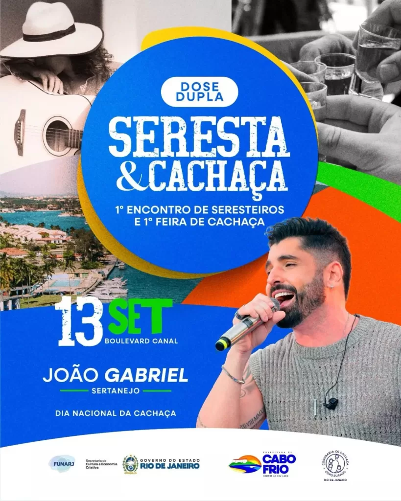 O Boulevard Canal, em Cabo Frio, recebe nesta sexta-feira (12) e sábado (13), a partir das 19h, o evento “Dose Dupla: Seresta e Cachaça”, que integra o 1º Encontro de Seresteiros e a 1ª Feira de Cachaça. A programação promete unir música, tradição e cultura local, com shows, degustações e atividades voltadas à valorização da produção artesanal.