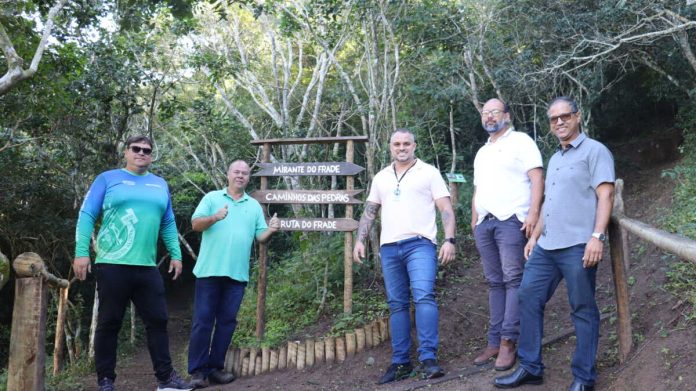 Após apresentar as novas instalações, o secretário de meio ambiente conduziu os participantes à Trilha do Frade. Com 1.250 metros de extensão e 193 metros de altitude, o percurso tem duração de 1h30min e tem dificuldade moderada. Além disso, o trajeto é composto por diversas espécies nativas da Mata Atlântica, como o araçá. Devido a sua extensão, os visitantes têm uma visão paradisíaca do município aldeense e de outras localidades.