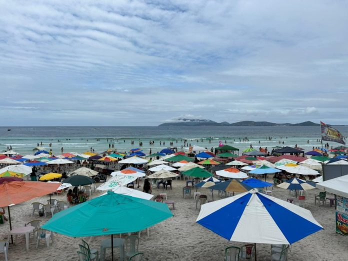 O primeiro dia útil de 2024 em Cabo Frio tem praia lotada! Nesta terça-feira (2), mesmo com o tempo nublado, banhistas tomam toda a extensão de areia da Praia do Forte, um dos maiores cartões postais da cidade.