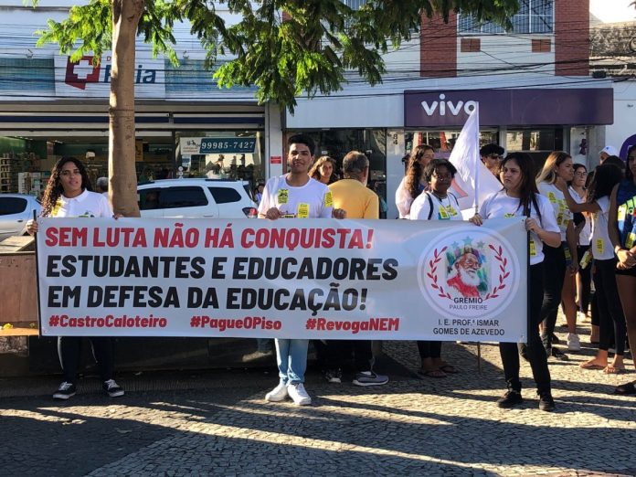 Os manifestantes denunciam que Castro e Bonifácio têm se recusado a autorizar o piso salarial para todos os profissionais da área, uma situação que prejudica não apenas os trabalhadores, mas também suas famílias. Além disso, exigem a revogação do novo ensino médio (NEM), a implementação de um projeto efetivo de combate à violência nas escolas, e a defesa do plano de carreira.