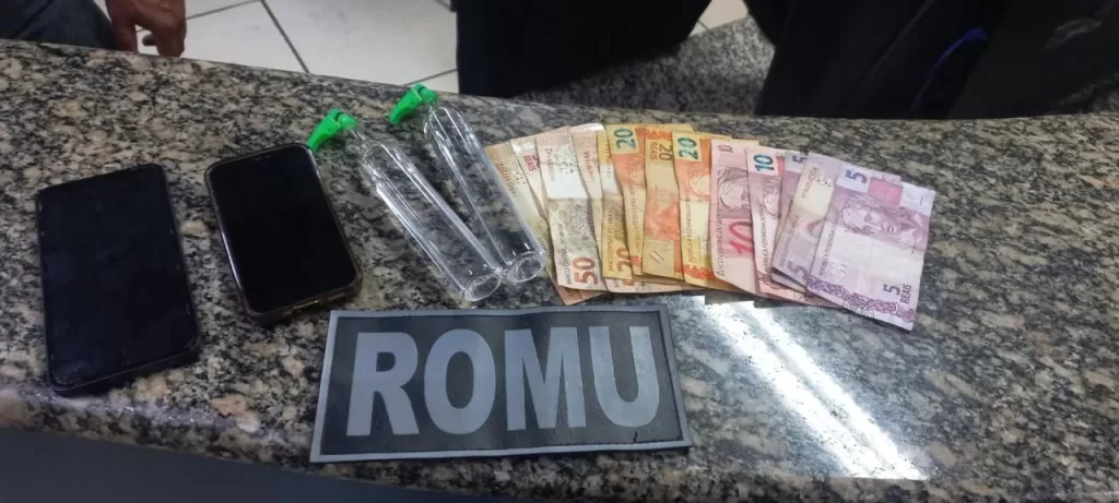 Durante patrulhamento no local, com apoio de outra viatura da ROMU, os agentes conseguiram localizar os suspeitos, que foram reconhecidos pela vítima. Em revista, os policiais encontraram com eles o celular roubado, drogas e dinheiro.