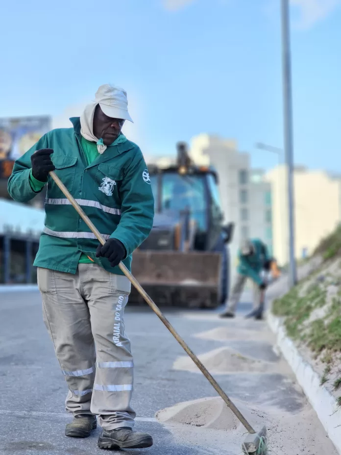 Os efeitos do ciclone extratropical que passou pela costa sudeste continuam sendo sentidos em Arraial do Cabo. Na manhã desta quarta (30), equipes da Secretaria de Serviços Públicos atuaram na remoção de uma grande quantidade de areia que foi levada para a pista da Praia Grande pelos ventos fortes registrados desde terça-feira (29).