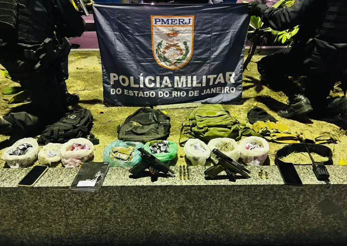 Na sequência da ação, outros dois envolvidos foram localizados escondidos em uma laje de imóvel aparentemente abandonado. Foram apreendidas mais drogas, uma pistola turca calibre 9mm, rádios transmissores, coldres e porta-carregadores de fuzil. Dois celulares também foram abandonados durante a fuga.