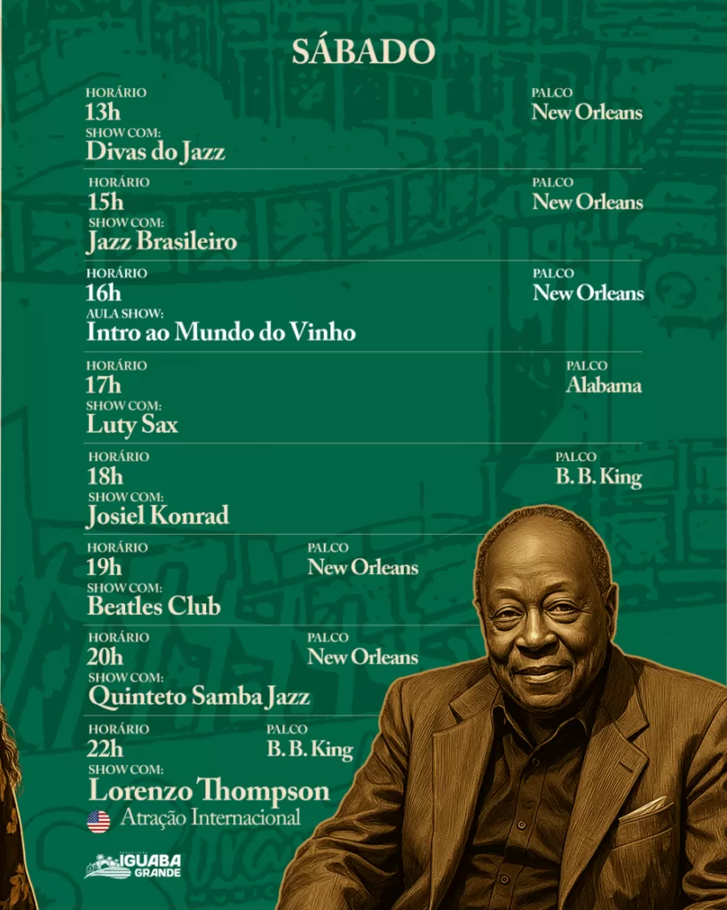 Durante o dia, outras atrações como Vinicius Lage Quarteto, Brenddon Miranda Quarteto, Josiel Konrad, Big Bee, Laís Alfradique e o Quinteto Samba Jazz se revezarão nos palcos com estilos variados, abrangendo jazz tradicional, samba jazz, blues e soul.